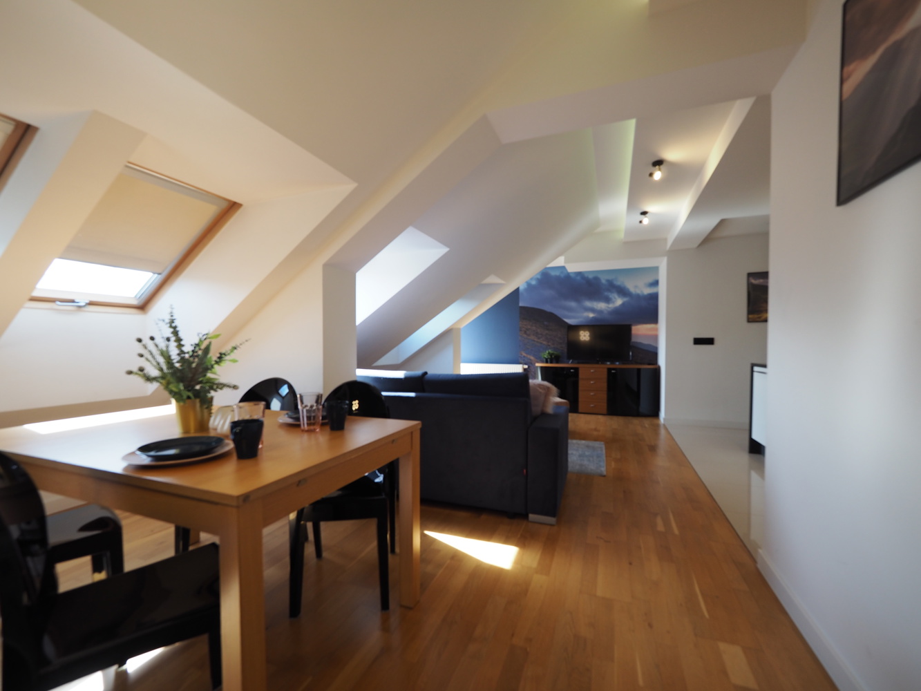 W salonie, z wyjściem na balkon, znajdziecie Państwo rozkładaną sofę (miejsce do spania dla dwóch osób), TV, stół z krzesłami. Z balkonu w salonie, tak jak i ze wszystkich okien można podziwiać panoramę Tatr.
